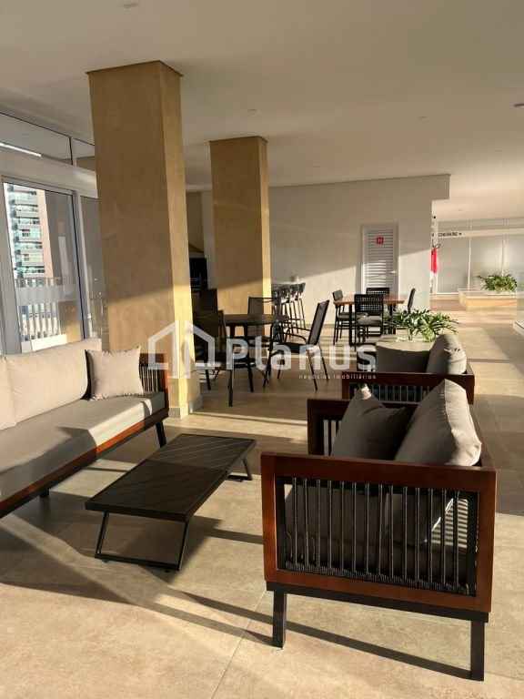 Sala de estar com painel para TV.