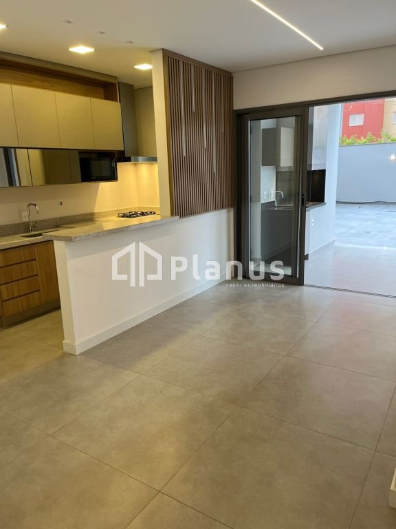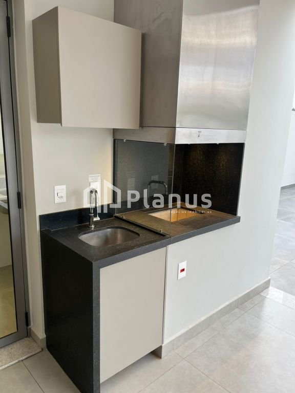 Varanda gourmet com churrasqueira, pia e ponto para gás